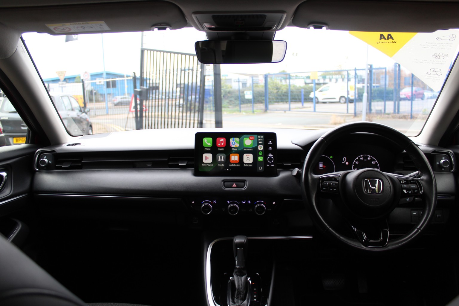 The HR-V features Heated leather Seats, Apple & android Carplay, and Honda Sensing With Blind Spot Information Including Cross Traffic Monitor & Adaptive Cruise Control With Lane Assist With Assisted Braking. Additionally, it comes with Heated Black Synthetic Leather and Fabric Seats With A Heated Leather Steering Wheel & Heated Windscreen. Honda Connect With Navigation, a 9″ touchscreen, AM/ FM/DAB, Other notable features include 18" black cut alloys, front & rear parking sensors with a rear view camera, an electric tail gate, dual climate controlled air conditioning, and USB chargers at the front and rear. The interior also features a gloss black panel with silver trims, LED lights, and much more.
